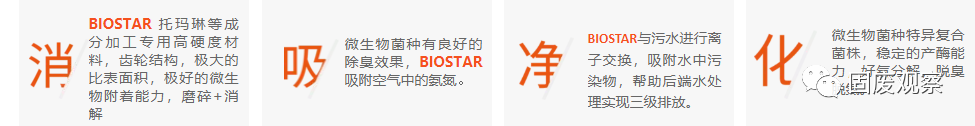 本技術采用的BIOSTAR生物載體, 采用托瑪琳等成分加工的高硬度材料,硬度較牙齒更高。可以高效協(xié)助磨碎大顆粒的有機物。載體材料對人體無害,通過獨特加工工藝在載體中制造更多適合微生物體積的小孔,具有極好的微生物附著能力,防水沖刷能力、氣體滯留吸收轉化空間,為微生物提供長期生存、有機物分解的環(huán)境條件。載體中生物降解和物理過濾過程同步進行;可實現(xiàn)優(yōu)秀的微生物附著性能,經過水流沖刷或食物揉碾過程,微生物擴繁在4-8h內恢復到100%。設備中形成了長期穩(wěn)定可持續(xù)微生態(tài)環(huán)境,有效促進微生物降解的效率。