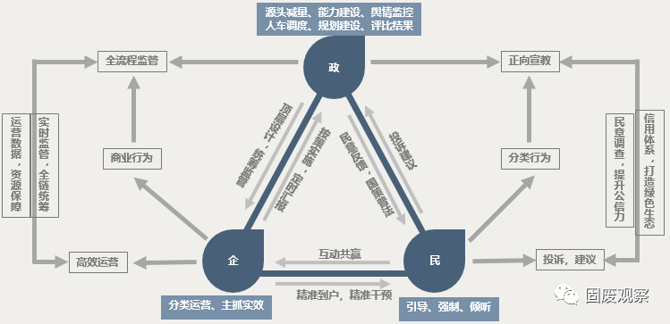 當(dāng)前,政、企、民三方各司其職,共同推進(jìn)垃圾分類(lèi)。政府層面聚焦頂層規(guī)劃,企業(yè)著力于高效運(yùn)營(yíng),居民端發(fā)動(dòng)全民參與。聯(lián)運(yùn)環(huán)境從企業(yè)角度分析了在此情況下,如何在政企民協(xié)同發(fā)展中嵌入信息化系統(tǒng),打造信息化閉環(huán)。