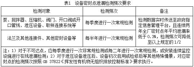 應(yīng)按表1頻次要求對(duì)設(shè)備密封點(diǎn)進(jìn)行檢測(cè)。