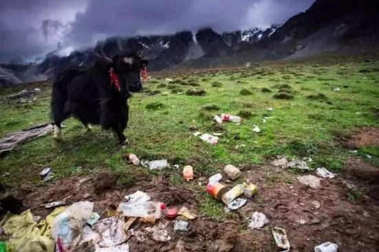 氧氣罐、罐頭盒、塑料袋,甚至是酒瓶……數(shù)量超乎想象,它們被人類從城市中帶到這里,格外刺目。