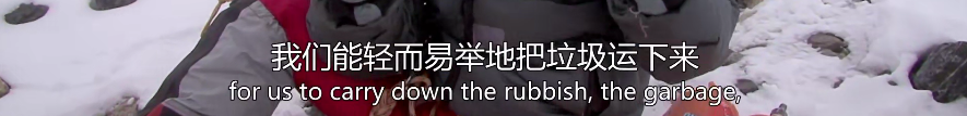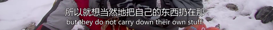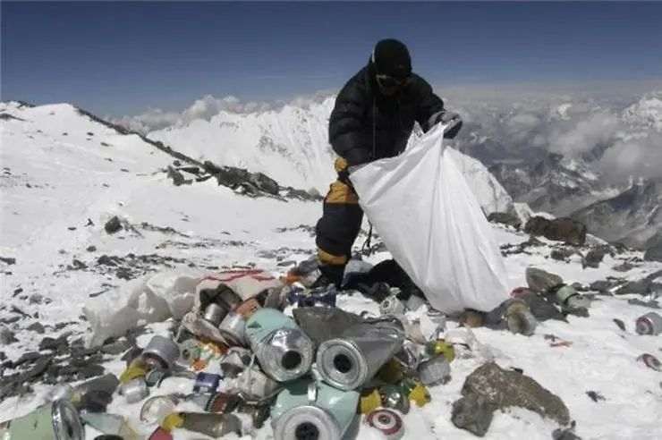 《珠峰清道夫》中一位登山隊(duì)員說(shuō):登山旺季,會(huì)有好幾十只登山隊(duì)伍到達(dá)這里,他們寄希望于清潔人員,干脆就把垃圾扔在山上。