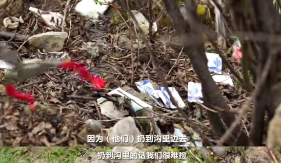也知道不對(duì),也知道惡心,于是他們決定“大發(fā)善心”地扔遠(yuǎn)一點(diǎn)。那些被扔到溝里或者崎嶇的陡崖上的垃圾,成為了撿垃圾的村民,最難以攻克的頑疾。