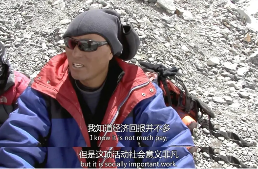 《珠峰清道夫》記錄著世代生活在珠峰腳下的夏爾巴人。他們視珠峰為圣潔的女神,不該存在任何垃圾、遺體被留在珠峰上。因此,他們承擔(dān)起了清道夫的責(zé)任。