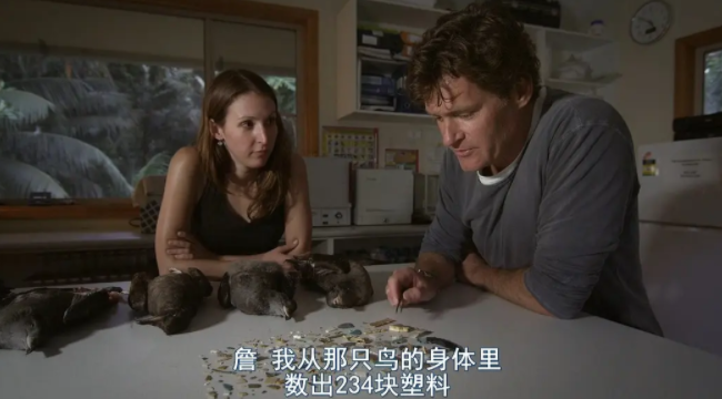 最讓人震撼的一幕,是科學(xué)家們用剪刀把死去的海鳥胃部剪開,映入眼簾的是密密麻麻的塑料。