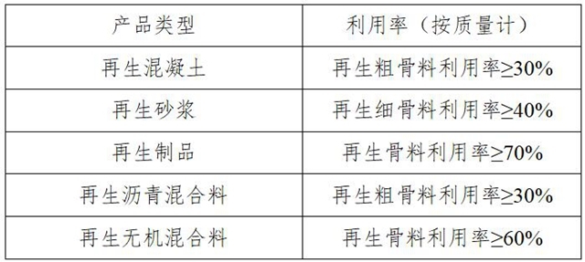 (四)企業(yè)生產(chǎn)資源化利用產(chǎn)品,其建筑垃圾再生材料的利用率應(yīng)符合表2的規(guī)定。