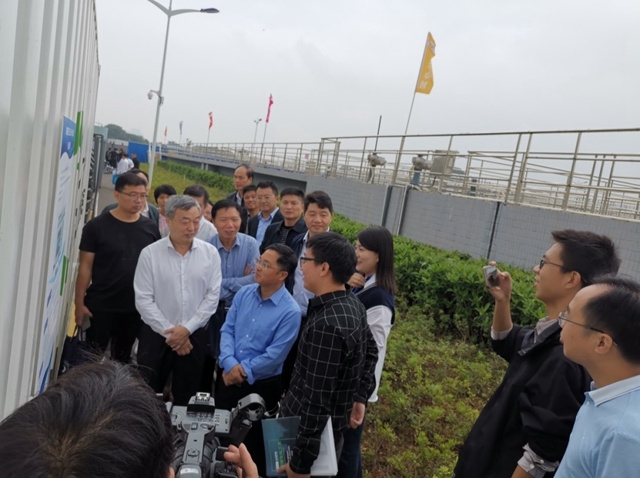 啟動儀式后,各位領(lǐng)導(dǎo)專家考察了本次生活污水一體化設(shè)備測試活動地點--長沙市聯(lián)泰水質(zhì)凈化有限公司(岳麓污水處理廠),易廳長、江處長蒞臨安力斯環(huán)境賽博集裝箱一體化設(shè)備現(xiàn)場進行參觀指導(dǎo),并詢問了安力斯高級工藝工程師羅工一些具體的技術(shù)指標(biāo)問題,對安力斯的產(chǎn)品和技術(shù)給予了充分的肯定。