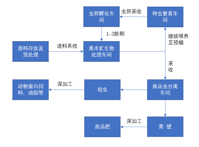 單就養(yǎng)殖技術(shù)來說,雖然控制有一定困難,但技術(shù)沒有多高的壁壘。再從大規(guī)模養(yǎng)殖的工程化角度來講,還有很多需要研究和優(yōu)化的地方。比如:整個養(yǎng)殖過程,涉及到的物料有餐廚垃圾、輔料、一齡期物料、蟲沙等,不同物料的臨時存儲、預(yù)處理、輸送、布料,都需要設(shè)計和考慮。預(yù)處理無機(jī)雜物的分揀,如玻璃、瓷器、塑料、餐具等,需要在一定程度上進(jìn)行考慮。物料的輸送和布料需要考慮,如何精準(zhǔn)的將物料輸送,并均勻平鋪到各個養(yǎng)殖層架上?又如何實現(xiàn)幼蟲和蟲糞的自動化分離?如何實現(xiàn)預(yù)蛹的自動化采收?當(dāng)然,純粹從技術(shù)角度來講,自動化問題也并非不可逾越,但是從商業(yè)角度,投資回報率也同樣重要,能否實現(xiàn)收益以及回報周期,才決定著投資的動力。從黑水虻的生長環(huán)境規(guī)劃上講,至少要分為原料及預(yù)處理車間、蟲卵孵化車間、幼蟲處理廢棄物車間、幼蟲分離車間、成蟲繁育車間等。黑水虻幼蟲需要在濕度60%,溫度28℃等條件下生長。成蟲需要在干燥環(huán)境并有縫隙處產(chǎn)卵,而且要根據(jù)蟲體的不同生長階段,對其進(jìn)行轉(zhuǎn)移。同時,因為代謝過程產(chǎn)物會以廢氣和水蒸氣排出,所以項目現(xiàn)場的除濕和換氣需要相關(guān)的設(shè)計和研究。這就需要從整體角度,對整個黑水虻養(yǎng)殖項目的廠房、物料的輸送轉(zhuǎn)運、可能產(chǎn)生的二次污染的處理設(shè)施,進(jìn)行合理的規(guī)劃和布局。