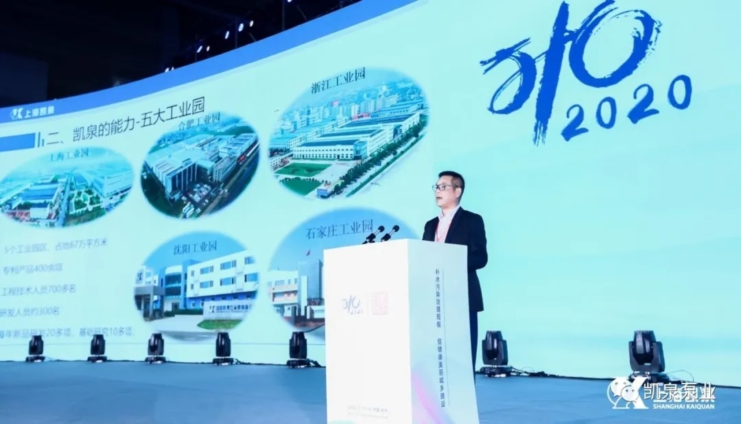 本次大會開幕式,上海凱泉泵業(yè)集團董事長兼總裁林凱文先生發(fā)表了以“技術(shù)創(chuàng)新,驅(qū)動城鄉(xiāng)安全供排水”為主題的演講,介紹了上海凱泉在城鎮(zhèn)供排水方面的整體解決方案,分享了企業(yè)在參與老舊小區(qū)改造、城鄉(xiāng)供水一體化以及市政污水系統(tǒng)處理方面的試點項目和實踐經(jīng)驗。