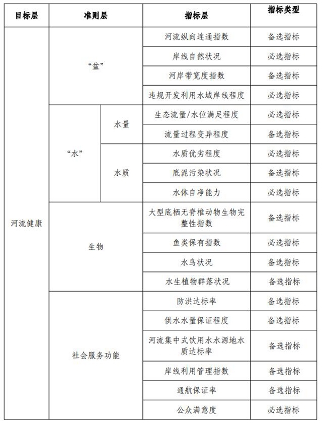 《指南》從生態(tài)系統(tǒng)結(jié)構(gòu)完整性、生態(tài)系統(tǒng)抗擾動彈性、社會服務(wù)功能可持續(xù)性三個方面建立河湖健康評價指標(biāo)體系與評價方法,從“盆”、“水”、生物、社會服務(wù)功能等4個準(zhǔn)則層對河湖健康狀態(tài)進(jìn)行評價。