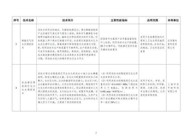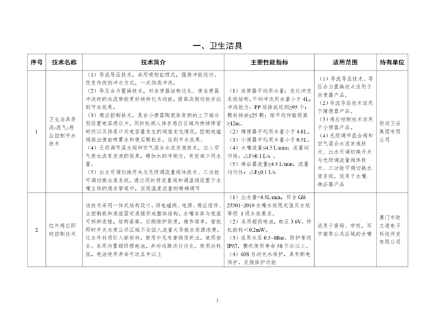 為貫徹節(jié)水優(yōu)先方針,落實《國家節(jié)水行動方案》目標任務,強化節(jié)水科技創(chuàng)新引領,促進水資源節(jié)約集約利用,水利部、國家機關事務管理局共同征集了衛(wèi)生潔具、洗滌設備、中央空調等領域的節(jié)水技術。經專家評審、網絡公示,形成了《國家成熟適用節(jié)水技術推廣目錄(2020年)》(見附件)?,F(xiàn)予公告。