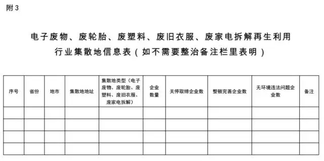 各省(區(qū)、市)按照清理整頓實(shí)施方案,先期開(kāi)展本行政區(qū)域內(nèi)專(zhuān)項(xiàng)清理整頓摸排工作,并于2017年9月30日前將本省(區(qū)、市)再生利用企業(yè)信息表(集散地外)和集散地信息表(見(jiàn)附2、3)分別報(bào)送環(huán)境保護(hù)部、發(fā)展改革委、工業(yè)和信息化部、公安部、商務(wù)部和工商總局。