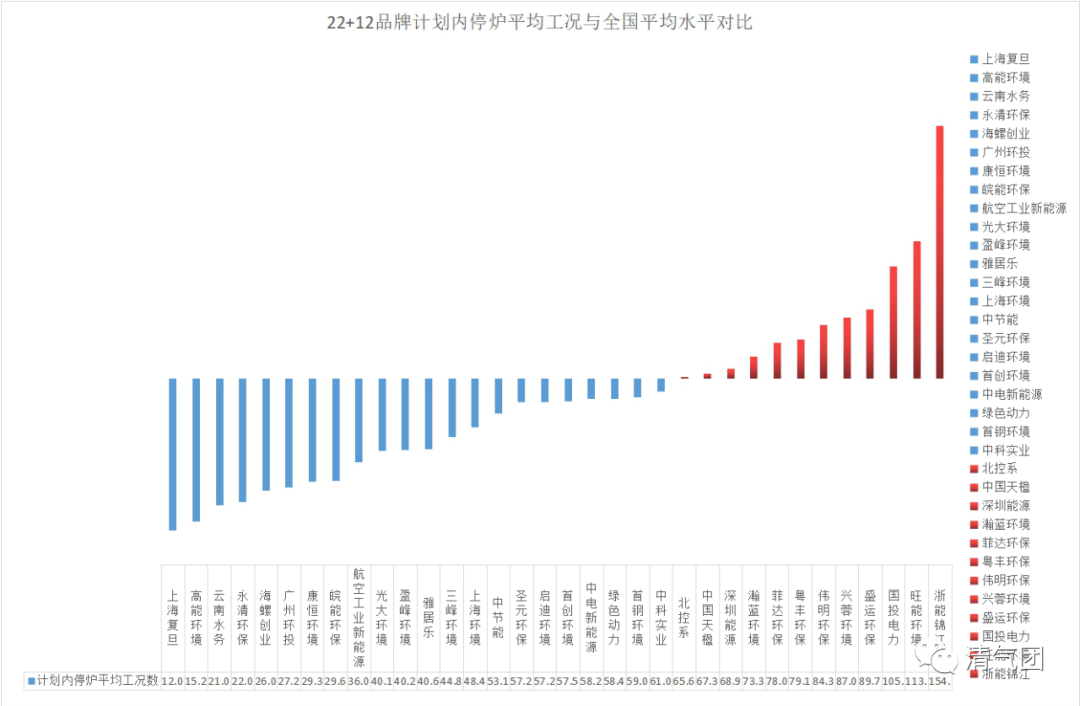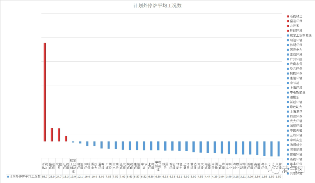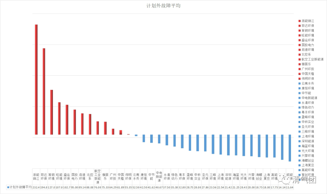 垃圾焚燒領(lǐng)域是近幾年環(huán)境監(jiān)管重點監(jiān)控的領(lǐng)域,也因為焚燒物料——垃圾的復(fù)雜多變、爐型的操作復(fù)雜、污染物成分和產(chǎn)生規(guī)律多樣,被認為是較難被新入行者掌握的環(huán)境治理項目。“跨界”做焚燒到底行不行?我們選取了以下12個品牌為“跨界”品牌,并將它們的相關(guān)運維情況,與22家資深垃圾焚燒品牌開展了橫向比較。菲達環(huán)保,全名浙江菲達環(huán)??萍脊煞萦邢薰臼菄鴥?nèi)煙氣治理和相關(guān)裝備設(shè)備制造的知名企業(yè),總部在浙江。2015年中標(biāo)貴州省織金縣垃圾焚燒項目,2019年底投入運營。高能環(huán)境,全名北京高能時代環(huán)境技術(shù)股份有限公司,公司前身北京高能墊襯工程有限公司由中科院高能物理研究所高能墊襯工程處改制成立,是國內(nèi)土壤修復(fù)、工業(yè)廢渣廢水處理、垃圾填埋場運營和修復(fù)的龍頭企業(yè)。2015年開始進軍垃圾焚燒行業(yè),目前在手運營項目四個,今年以來中標(biāo)多個垃圾焚燒項目。該公司在2020年環(huán)境五十強榜單中排名第21名。國投電力,國投電力控股股份有限公司,是國家開發(fā)投資集團有限公司旗下電力上市企業(yè),2019年通過并購方式,開始運營位于貴州省六盤水市的貴州新源垃圾焚燒項目,同時還在2018年通過股權(quán)轉(zhuǎn)讓方式成為國內(nèi)知名固廢企業(yè)——瀚藍環(huán)境的第二大股東。中國航空工業(yè)新能源投資有限公司,前身系中國航空發(fā)動機總公司,是國家大型中央企業(yè)——中國航空工業(yè)集團有限公司旗下成員單位,公司涵蓋清潔能源、市政環(huán)境、綜合能源服務(wù)三大業(yè)務(wù)版塊。2014年旗下四川南充垃圾焚燒項目正式運行,這也是中航系旗下目前唯一的垃圾焚燒項目。上海復(fù)旦水務(wù)工程技術(shù)有限公司,是由上海復(fù)旦大學(xué)和上海實業(yè)集團成立的從事污水處理BOT項目高新技術(shù)開發(fā)和投資的專業(yè)公司,2016年從杭州新世紀(jì)手中低調(diào)并購了山東省日照市五蓮垃圾焚燒項目,控股90%,借此機會,上海復(fù)旦系資本也開始介入垃圾焚燒和固廢領(lǐng)域。2019年,該公司還與山東省莘縣住房和城鄉(xiāng)建設(shè)局簽署總投資約為人民幣6億元的垃圾焚燒發(fā)電項目BOT特許經(jīng)營協(xié)議。興蓉環(huán)境,在2020年環(huán)境五十強榜單中排名第23名。是成都環(huán)境投資集團下轄的環(huán)保上市公司,主要從事自來水、污水和地下管網(wǎng)維護等業(yè)務(wù),是我國知名水環(huán)境領(lǐng)域運營企業(yè),旗下有兩家垃圾焚燒廠,均在成都市范圍內(nèi)。雅居樂,我國知名房地產(chǎn)企業(yè),2015年底進軍環(huán)保領(lǐng)域,成立了雅居樂環(huán)保集團,通過收并購方式,運營了45個環(huán)保項目,其中多數(shù)為危廢項目,目前雅居樂擁有超350萬噸/年的危廢處理資質(zhì)和超1900萬立方米的安全填埋場庫容,位居行業(yè)前列。雅居樂目前在垃圾焚燒領(lǐng)域擁有三個項目,焚燒總量為7000噸每日。盈峰環(huán)境,由美的系資本通過并購方式,打造的龐大環(huán)境產(chǎn)業(yè)集團,是深交所上市企業(yè),目前是國內(nèi)智能環(huán)境裝備及服務(wù),尤其是環(huán)衛(wèi)設(shè)備的行業(yè)引領(lǐng)者,今年以來是環(huán)衛(wèi)市場中標(biāo)金額最高的企業(yè)。旗下通過并購方式,在手運營四家垃圾焚燒企業(yè)。該公司在2020年中國環(huán)境五十強榜單中排名第六。永清環(huán)保,是國內(nèi)知名的土壤環(huán)境治理和工業(yè)大氣治理企業(yè),也是深市A股企業(yè)。旗下在手運營兩家垃圾焚燒廠,并參股了長沙市生活垃圾焚燒廠。首鋼環(huán)境,全名首鋼環(huán)境產(chǎn)業(yè)有限公司(以下簡稱“首鋼環(huán)境”)為首鋼集團全資子公司,主要有生活垃圾綜合處理、城市固廢資源化處置、工業(yè)污染場地土壤治理及生態(tài)修復(fù)三個主營業(yè)務(wù)。旗下在手運營魯家山垃圾焚燒廠。云南水務(wù),該公司在2020年中國環(huán)境五十強榜單中排名第13,是我國水務(wù)行業(yè)的龍頭企業(yè)。2015年,在香港聯(lián)交所正式掛牌交易,在海內(nèi)外擁有分、子公司近280家,污水項目151個,日處理總規(guī)模約為362萬噸,自來水項目66個,日處理總規(guī)模約為233萬噸。中科實業(yè),為中科院旗下中科集團所屬專業(yè)從事生活垃圾焚燒、污泥干化等固體廢棄物處置技術(shù)研發(fā)和應(yīng)用的高科技工程公司。目前擁有五座垃圾焚燒廠。十二個品牌,均為行業(yè)內(nèi)或在公眾認知較為知名的品牌,總共擁有在手垃圾焚燒廠27家,共43臺焚燒爐,除中科實業(yè)的汾陽項目,是兩臺循環(huán)流化床外,其余焚燒廠都是爐排爐;大部分投產(chǎn)時間都在2015年之后,爐齡比較新。這些“跨界”品牌目前的運營狀況如何,與老牌企業(yè)相比有何高下之分?由清氣團、上海青悅、蕪湖生態(tài)中心三家機構(gòu)組成的垃圾焚燒ESG評價研究團隊,開展了專題研究。此次研究依然以品牌的平均工況水平為衡量指標(biāo)——計劃內(nèi)停爐檢修工況平均天次;計劃外停爐檢修工況平均天次;計劃外故障檢修工況平均天次。我們首先計算了上述三個指標(biāo)的全國平均水平,數(shù)據(jù)截取日期為今年一月一日至十一月二日。計劃