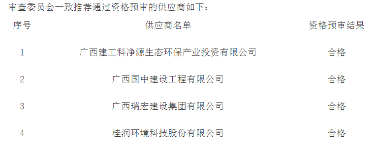 廣西省合山市管網(wǎng)修復(fù)和污水處理廠改造工程PPP項(xiàng)目資格預(yù)審結(jié)果公告發(fā)布,其中有4企通過(guò)資格預(yù)審。