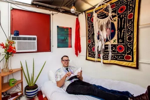 看到威爾遜歡樂地從垃圾箱里蹦進蹦出,可不要以為這是什么一時興起的行為藝術,因為他在垃圾箱里已經住了一年,還把小小的居住空間,升級成了這樣的極簡智能住宅。