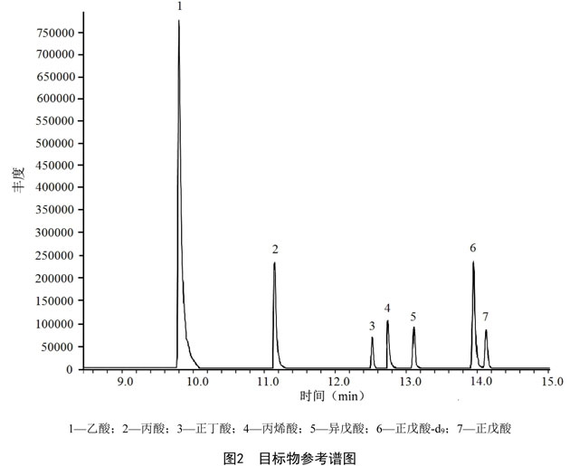在本標(biāo)準(zhǔn)儀器參考條件下,目標(biāo)物的參考譜圖見圖2。