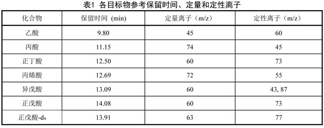 以浸漬硅膠采樣管采集環(huán)境空氣和無組織排放監(jiān)控點(diǎn)空氣中的羧酸類化合物,經(jīng)水超聲解吸、甲基叔丁基醚萃取、濃縮、定容后用氣相色譜分離,質(zhì)譜檢測(cè)。根據(jù)保留時(shí)間、特征離子質(zhì)荷比及其豐度比定性,內(nèi)標(biāo)法定量。