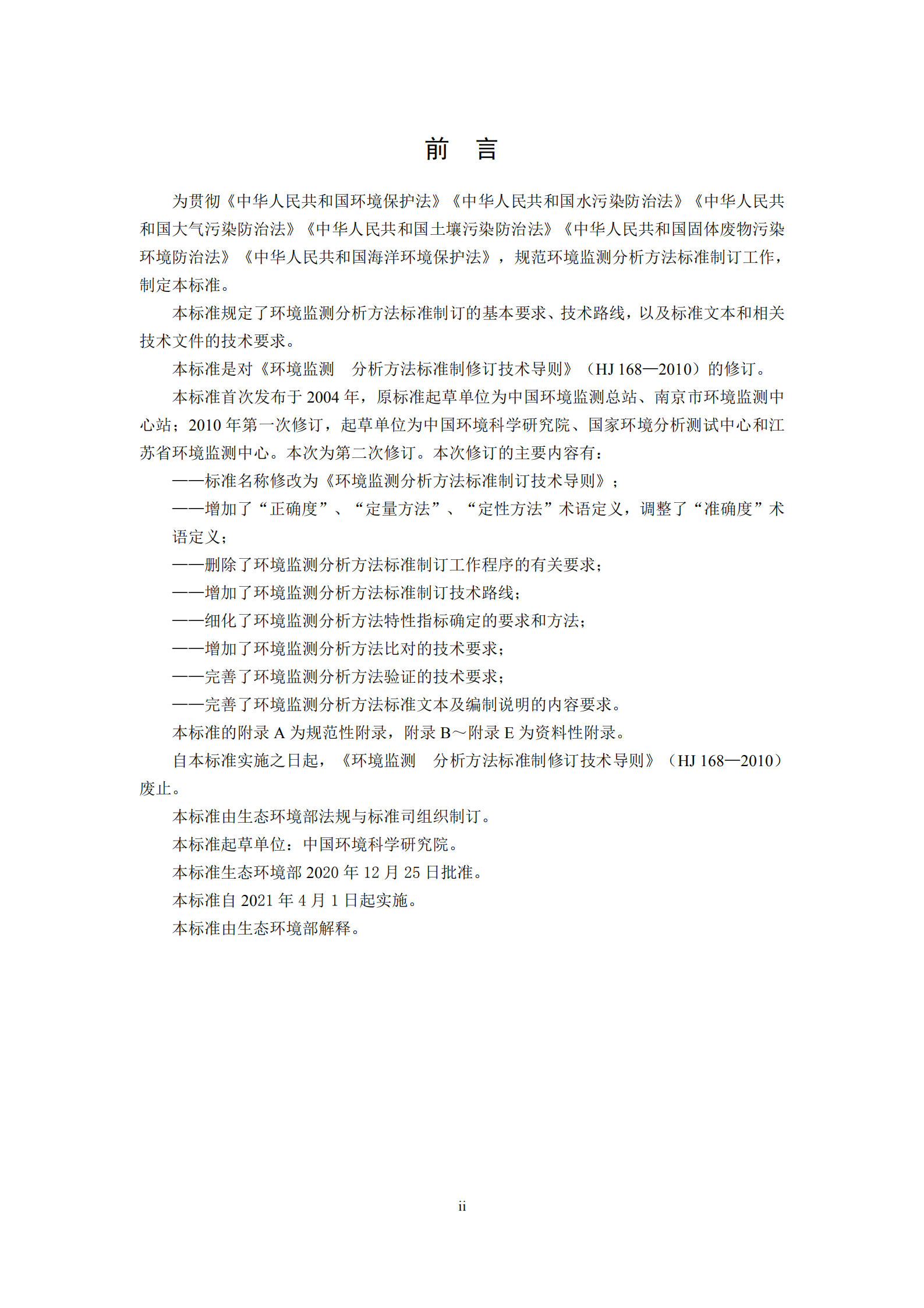 本標準是對《環(huán)境監(jiān)測 分析方法標準制修訂技術導則》(HJ 168—2010)的修訂。