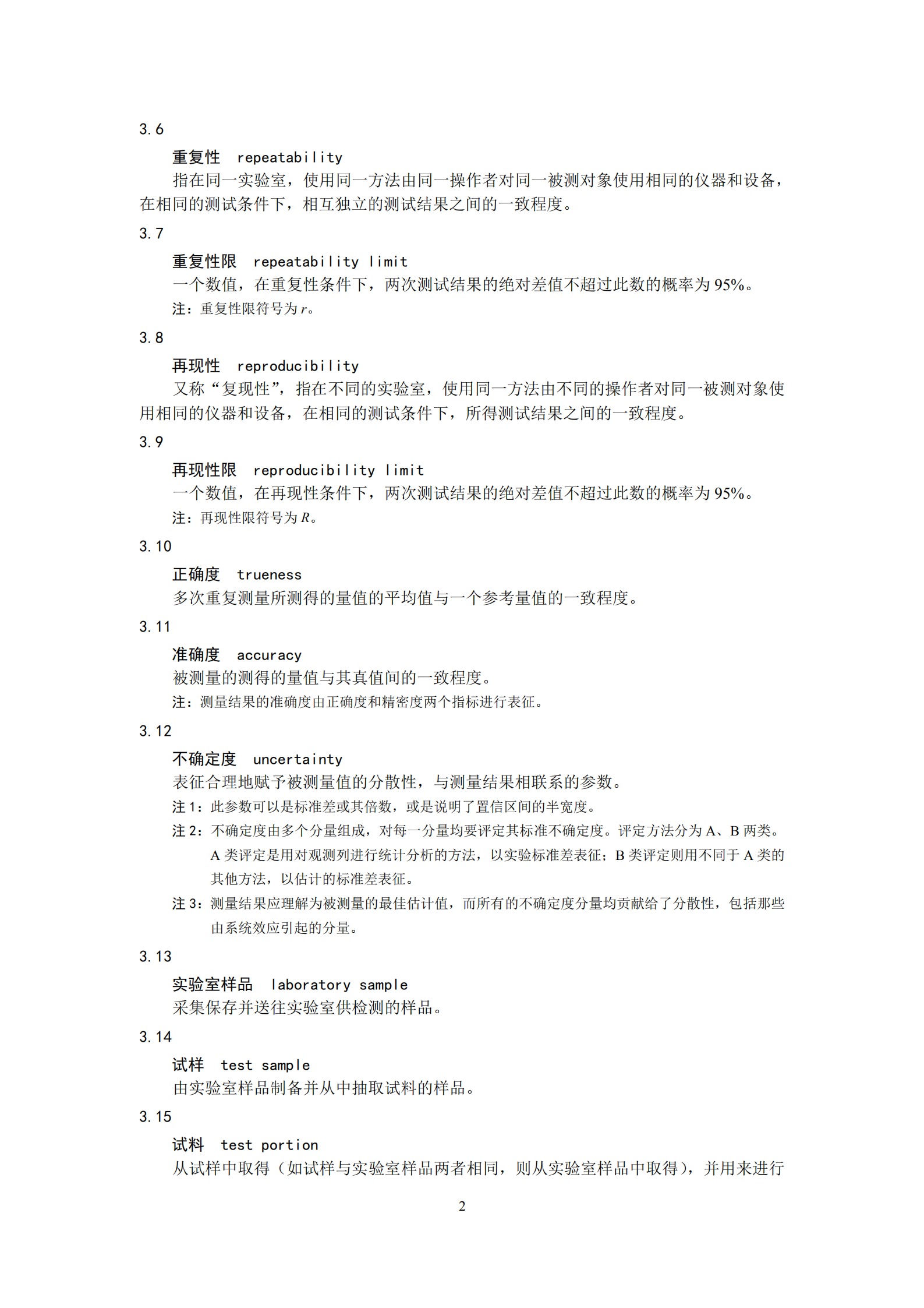 ——增加了“正確度”、“定量方法”、“定性方法”術語定義,調整了“準確度”術 語定義;