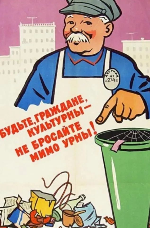 圖片說(shuō)明:俄羅斯海報(bào),文字“мусор свой тащи домой”,即“你的垃圾,請(qǐng)帶回家”。俄羅斯一位人士,對(duì)廢棄物回收利用:日本借鑒蘇聯(lián),俄羅斯借鑒日本,作出了介紹和評(píng)價(jià),以下為具體內(nèi)容: