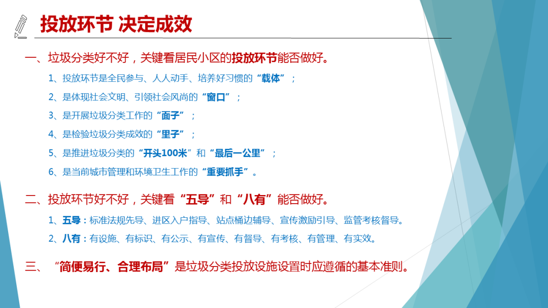 自習近平總書記2016年11月21日提出要建立生活垃圾分類制度以來,46個重點城市的垃圾分類工作取得了初步成效,其他城市的垃圾分類工作也在逐步推進,但由于受新冠疫情等影響,總體進展情況低于預期。垃圾分類是一項涉及面很廣的系統(tǒng)工程,其中小區(qū)投放環(huán)節(jié)是決定成敗的核心環(huán)節(jié),而“簡便易行、合理布局”是投放設施設置的基本準則。如何按照這個準則來規(guī)范管理人職責和行為、優(yōu)化投放點設置和形式、實施居民區(qū)宣傳和督導?本期固廢觀察將與你一一分享。
