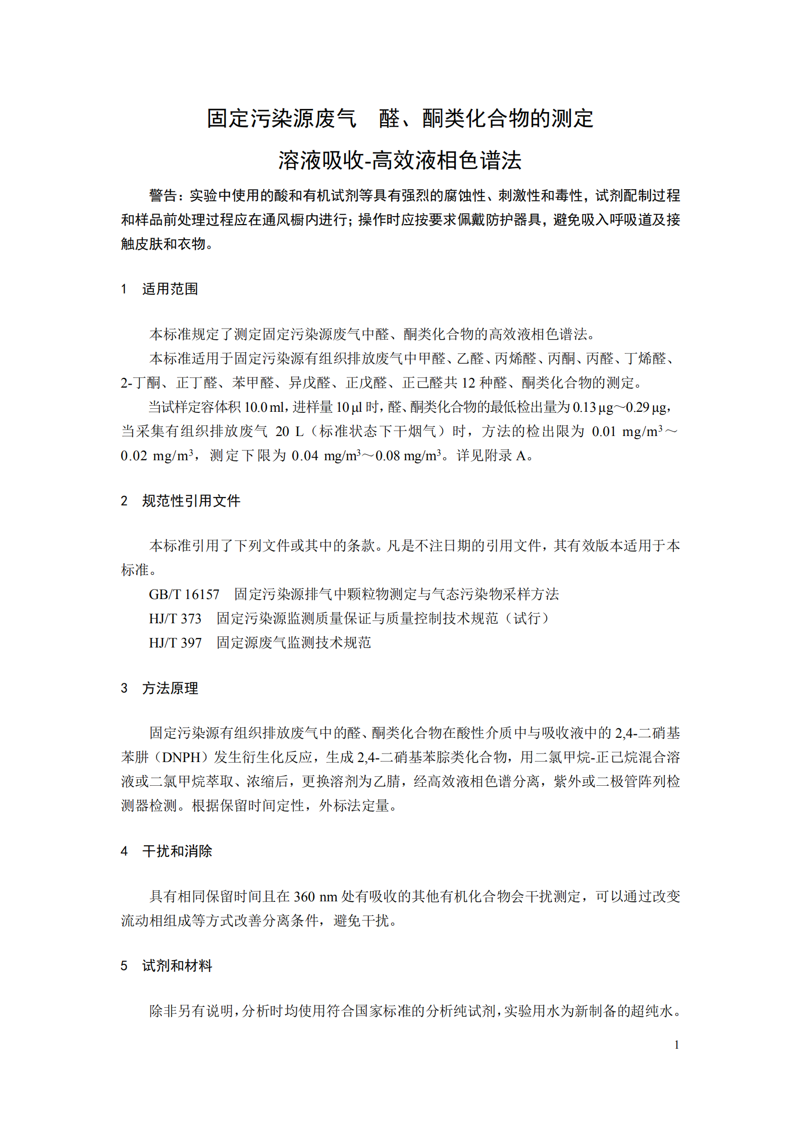 本標準規(guī)定了測定固定污染源廢氣中醛、酮類化合物的高效液相色譜法。