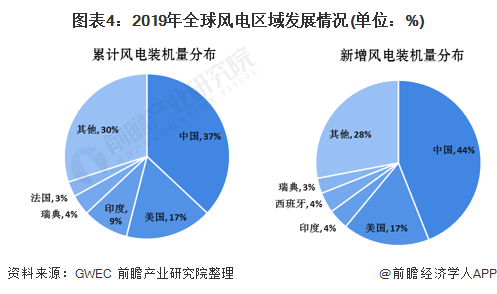 根據(jù)全球風(fēng)能理事會(huì)(GWEC)發(fā)布的《全球風(fēng)能報(bào)告2019》公布的數(shù)據(jù)顯示,2019年中國風(fēng)電累計(jì)裝機(jī)量占全球的比重達(dá)37%,較2017年提高了19個(gè)百分點(diǎn),新增風(fēng)電裝機(jī)量排名全球第一,2019年中國新增風(fēng)電裝機(jī)量占全球新增風(fēng)電裝機(jī)量的比重達(dá)44%。中國已經(jīng)成為全球主要的風(fēng)電市場。