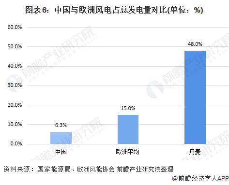 雖然已經(jīng)提前達(dá)到了國家能源局發(fā)布的《風(fēng)電發(fā)展“十三五”規(guī)劃》提出的到2020年底我國風(fēng)電占比要達(dá)到6%的發(fā)展目標(biāo),但與歐洲相比仍然具有較大的差距,我國風(fēng)電開發(fā)程度仍有較大的提升空間。