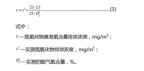 氮氧化物排放濃度應按公式(1)折算為基準氧含量15%時的排放濃度作為達標判定的依據(jù)。