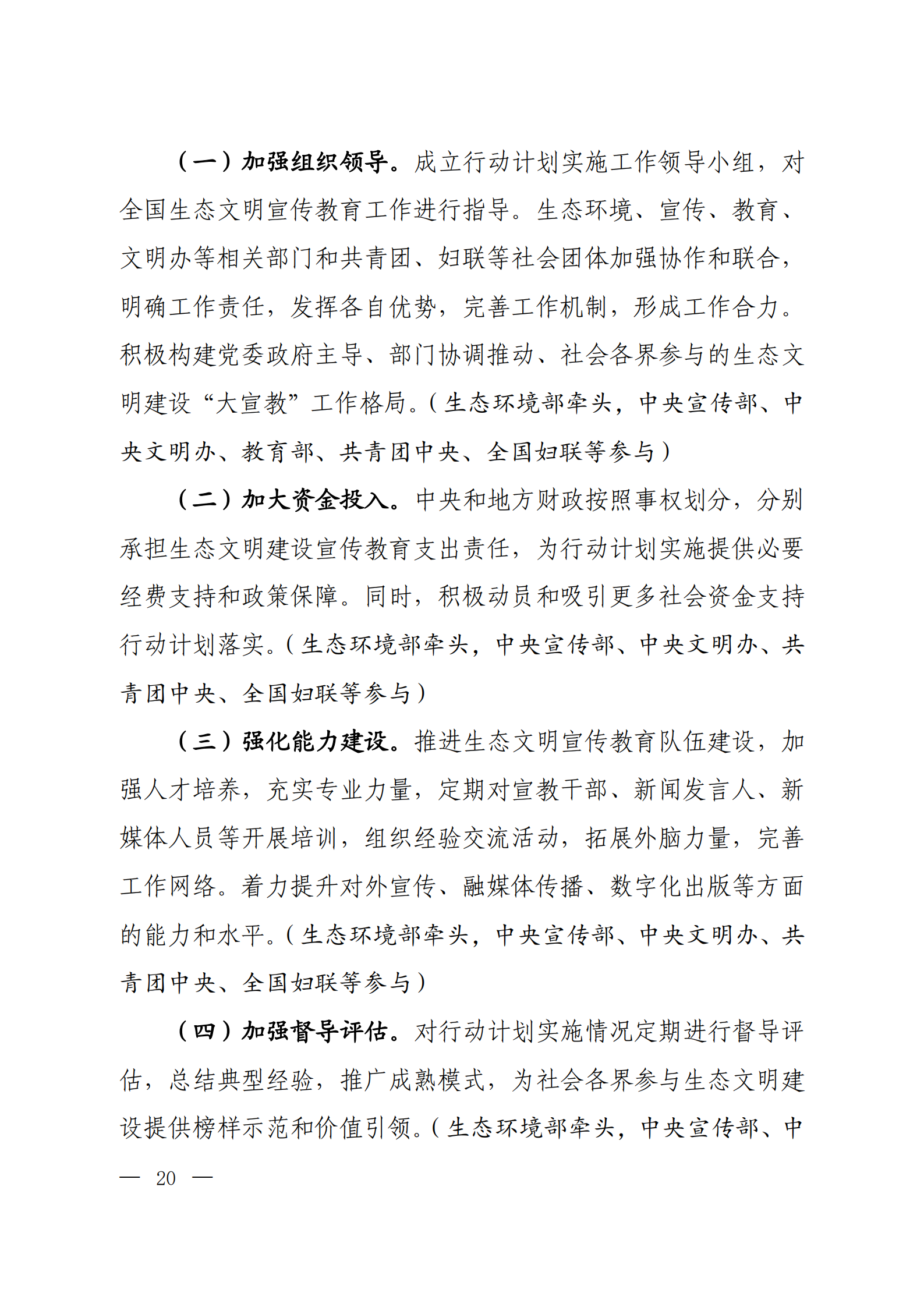為貫徹落實(shí)黨的十九大、十九屆二中、三中、四中、五中全會(huì)精神和全國(guó)生態(tài)環(huán)境保護(hù)大會(huì)精神,提升公民生態(tài)文明意識(shí),把建設(shè)美麗中國(guó)化為全社會(huì)自覺(jué)行動(dòng),依據(jù)黨中央、國(guó)務(wù)院關(guān)于“十四五”時(shí)期推進(jìn)生態(tài)文明建設(shè)的工作部署,生態(tài)環(huán)境部、中央宣傳部、中央文明辦、教育部、共青團(tuán)中央、全國(guó)婦聯(lián)等六部門(mén)聯(lián)合編制了《“美麗中國(guó),我是行動(dòng)者”提升公民生態(tài)文明意識(shí)行動(dòng)計(jì)劃(2021-2025年)》,現(xiàn)印發(fā)給你們。請(qǐng)各地區(qū)各部門(mén)加強(qiáng)組織領(lǐng)導(dǎo),相互協(xié)調(diào)配合,認(rèn)真貫徹落實(shí)。