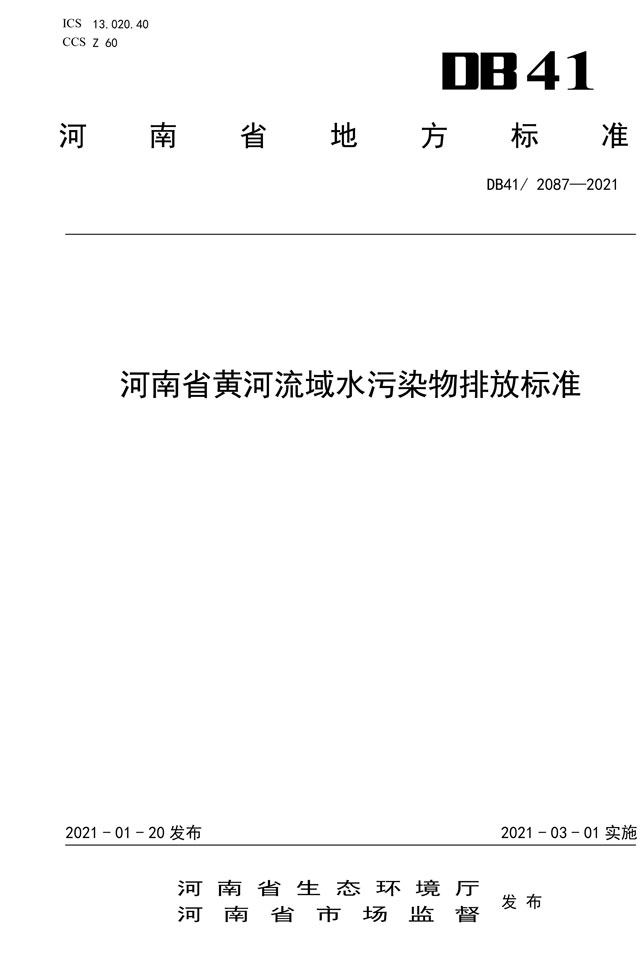河南省黃河流域水污染物排放標(biāo)準(zhǔn)
