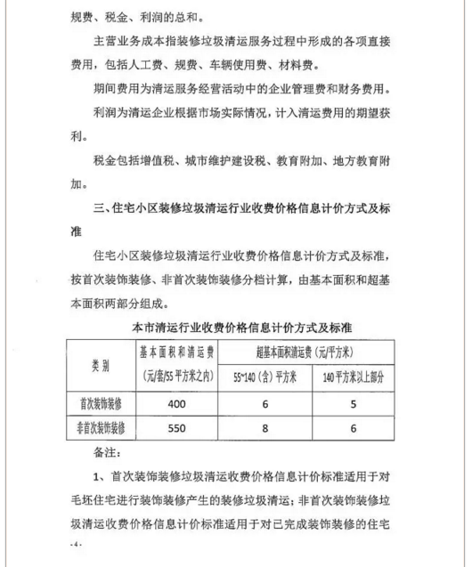 答3:《價(jià)格信息》明確,清運(yùn)費(fèi)涵蓋清運(yùn)單位將業(yè)主裝修中產(chǎn)生的非生活垃圾,從小區(qū)指定的堆放點(diǎn),運(yùn)到分揀、中轉(zhuǎn)場(chǎng)所所收取的費(fèi)用。不包括分揀、中轉(zhuǎn)、處置費(fèi)用,以及管理部門(mén)、清運(yùn)單位對(duì)小區(qū)裝修垃圾清運(yùn)進(jìn)行協(xié)調(diào)管理人員的費(fèi)用。