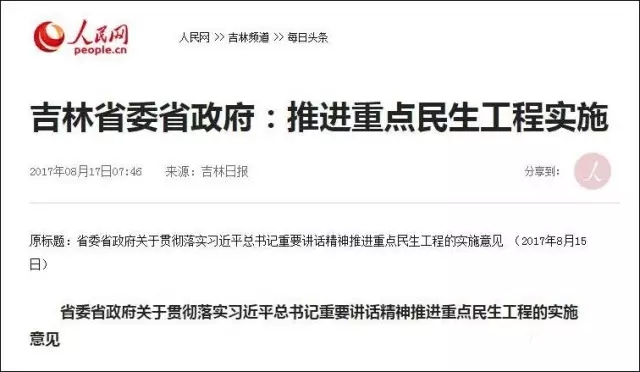 8月15日,吉林省委省政府發(fā)布了《關(guān)于貫徹落實(shí)習(xí)近平總書記重要講話精神推進(jìn)重點(diǎn)民生工程的實(shí)施意見》。其中,圍繞貫徹落實(shí)習(xí)近平總書記重要講話精神,結(jié)合吉林省實(shí)際,提出多項(xiàng)實(shí)施意見。