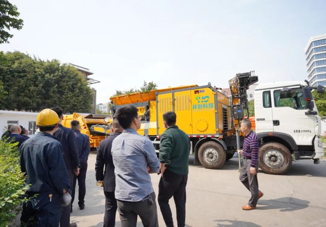 參會(huì)代表實(shí)地參觀(guān)考察了廈門(mén)園林垃圾資源化處置示范基地。該基地配備了環(huán)創(chuàng)科技研發(fā)的園林垃圾移動(dòng)破碎車(chē)、壓縮運(yùn)輸車(chē)、枝葉分離系統(tǒng)、生物質(zhì)RDF制粒系統(tǒng)、智能好氧生物發(fā)酵系統(tǒng)等成套處置設(shè)備,用于對(duì)廈門(mén)市思明區(qū)園林垃圾進(jìn)行資源化處置,年處置量可達(dá)4萬(wàn)噸以上。