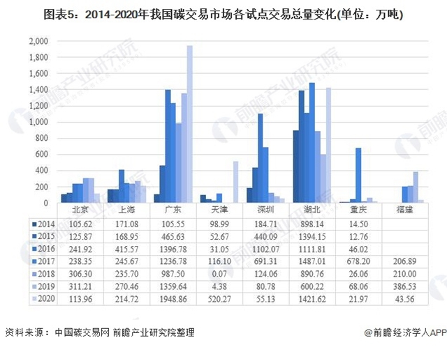 碳排放權(quán)交易市場(chǎng)是指以溫室氣體排放配額或溫室氣體減排信用為標(biāo)的物所進(jìn)行的交易的市場(chǎng)。我國(guó)碳交易市場(chǎng)金額自建立起呈現(xiàn)增長(zhǎng)態(tài)勢(shì),并且各個(gè)試點(diǎn)呈現(xiàn)了不同的市場(chǎng)樣貌,未來在十四五期間,市場(chǎng)將會(huì)繼續(xù)壯大和完善,為實(shí)現(xiàn)碳中和等的減排目標(biāo)助力。