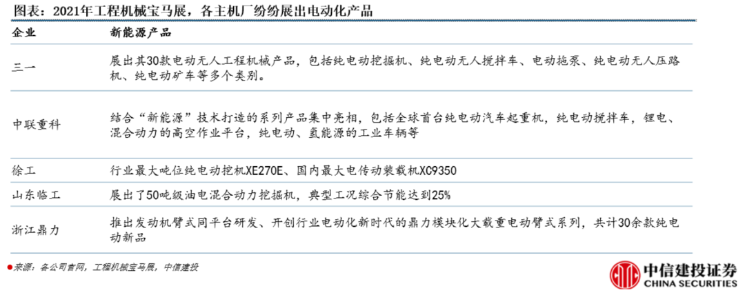 工程機械龍頭企業(yè)在電動化領(lǐng)域研發(fā)實力更強,布局更早,將引領(lǐng)行業(yè)進步與變化,重點推薦三一重工、中聯(lián)重科、徐工機械。