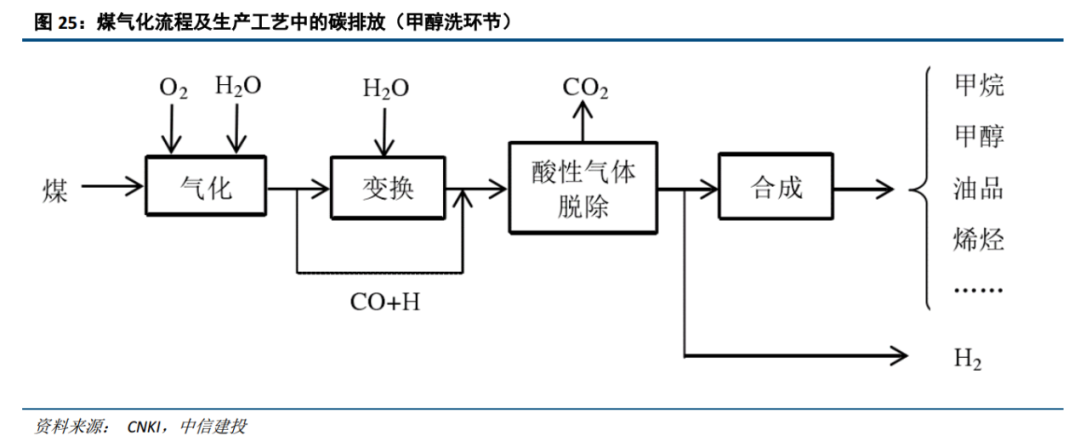 3、優(yōu)質(zhì)企業(yè)有更好的氣化工藝,碳轉(zhuǎn)換率更高、煤炭單耗更低,無形之中都降低碳排放:先進的氣流床煤氣化工藝,不但對原料煤品質(zhì)要求更低,碳轉(zhuǎn)換效率也更高。以華魯恒升為參考,其制造單位合成氣消耗煤565kg,遠低于固定床工藝690-690kg的消耗。另以寶豐能源為參考,據(jù)公開披露資料,公司CTO路線煤醇比1.5、甲醇單耗2.89,這些都提供了潛在的碳排放降低。另外,更加改良的甲醇洗環(huán)節(jié)工藝也將有效降低煤化工生產(chǎn)工藝中產(chǎn)生的碳排放。
