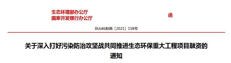 為深入貫徹落實(shí)黨中央、國務(wù)院關(guān)于推進(jìn)生態(tài)文明建設(shè)、全面加強(qiáng)生態(tài)環(huán)境保護(hù)、深入打好污染防治攻堅(jiān)戰(zhàn)的決策部署,推進(jìn)生態(tài)環(huán)境治理體系和治理能力現(xiàn)代化,生態(tài)環(huán)境部、國家開發(fā)銀行簽署《關(guān)于深入打好污染防治攻堅(jiān)戰(zhàn) 共同推進(jìn)生態(tài)環(huán)保重大工程項(xiàng)目融資合作備忘錄》,發(fā)揮部行合作優(yōu)勢,共同加大生態(tài)環(huán)保重大工程項(xiàng)目融資,培育環(huán)保產(chǎn)業(yè)新增長點(diǎn)。