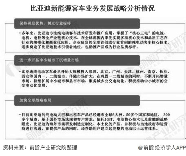 比亞迪新能源客車能夠保持如此迅猛的市場(chǎng)爆發(fā)力,主要是憑借其強(qiáng)大的研發(fā)實(shí)力在市場(chǎng)競(jìng)爭(zhēng)中保持先進(jìn)地位,對(duì)核心技術(shù)的把控,并專注于純電動(dòng)客車的研發(fā)與推廣,是比亞迪新能源客車銷量保持良好勢(shì)頭的重要因素;另外比亞迪正在進(jìn)一步開拓中小城市的下沉增量市場(chǎng),持續(xù)擴(kuò)展中小城市和縣市市場(chǎng),服務(wù)城鄉(xiāng)公交電動(dòng)化;與此同時(shí),比亞迪在逐步完善全球化的戰(zhàn)略布局。