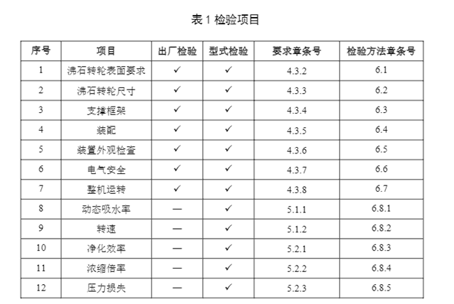 5.1.1濃縮裝置的沸石動態(tài)吸水率應(yīng)小于10%。