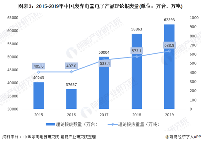 廢棄電器電子產(chǎn)品理論報(bào)廢量逐年上升