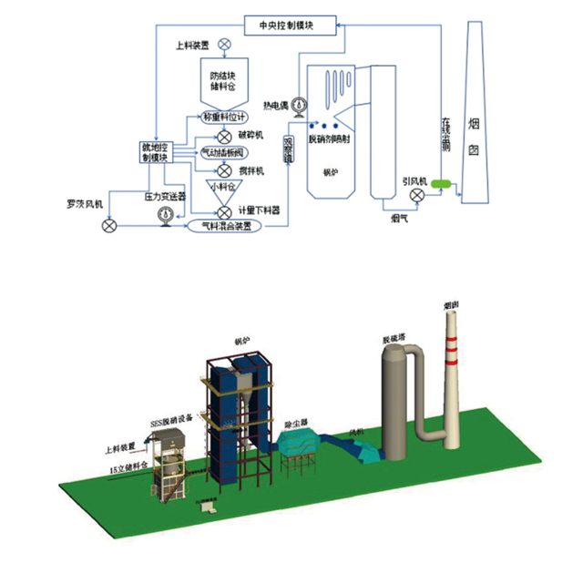 PSCR是指在爐膛或煙道750°C-1250°C (850°C-950°C 最佳)溫度區(qū)域開孔,通過SES設(shè)備輸進(jìn)PSCR固態(tài)高分子脫硝劑,與煙氣充分混合后,分解出活性酰胺基團(tuán)與NOx反應(yīng)生成CO2、Nz和微量H20,從而去除煙氣中的NOx。