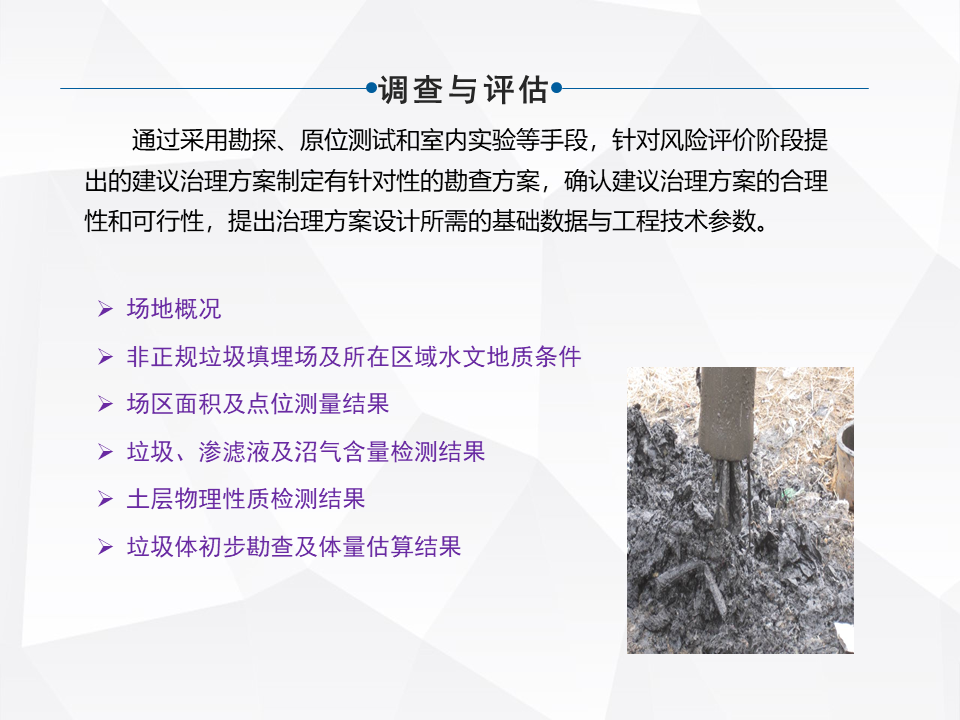 什么叫非正規(guī)垃圾填埋場?70年代、80年代沒有垃圾廠的時候,沙石坑、料坑一直在填垃圾,隨著發(fā)展,有污染的風險,北京市在全國第一個做這個,現(xiàn)在我們的經(jīng)驗做法從住建部往全國推了,是前景特別好的一個行業(yè)。當時我們單位那個課題我參與了,我們在科委做兩個課題,一個是非正規(guī)填埋場前期的勘查,當時我們跟北排院一塊做,再一個是非正規(guī)填埋場的技術治理,怎么治理,徐姐當時在豐臺這邊的公司做了第一個項目,是跟我們合作的。當時也是在行業(yè)第一個,當時那個項目將近一兩個億,也是一個大的項目。