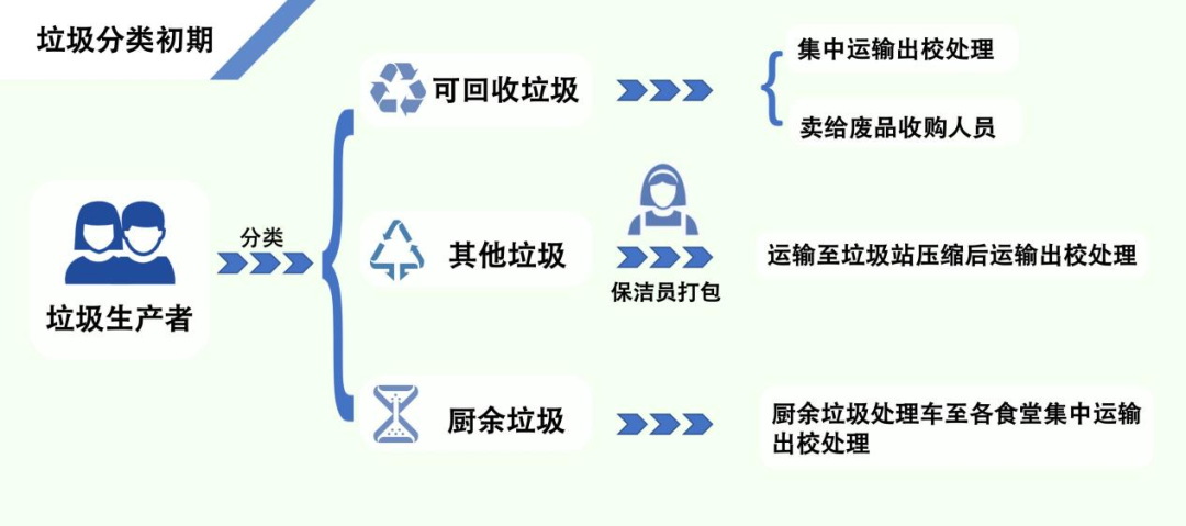 宿舍樓棟內(nèi)的垃圾分類方式已發(fā)生變化,保潔員的工作從打包延展至分類,他們需對學生投放的垃圾再次開包分揀。3棟的代同學并不知曉垃圾分類方式的變化,他以為是宿舍的客觀條件限制加上部分學生分類意識較差的主觀原因,共同自下而上地導致了“二次分類”。2棟的劉同學表示,看到宿舍保潔員還要將自己已經(jīng)分好類的垃圾再分揀一遍,十分疑惑。
