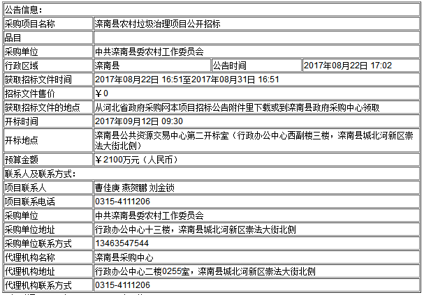 項(xiàng)目名稱(chēng):灤南縣農(nóng)村垃圾治理項(xiàng)目公開(kāi)招標(biāo)