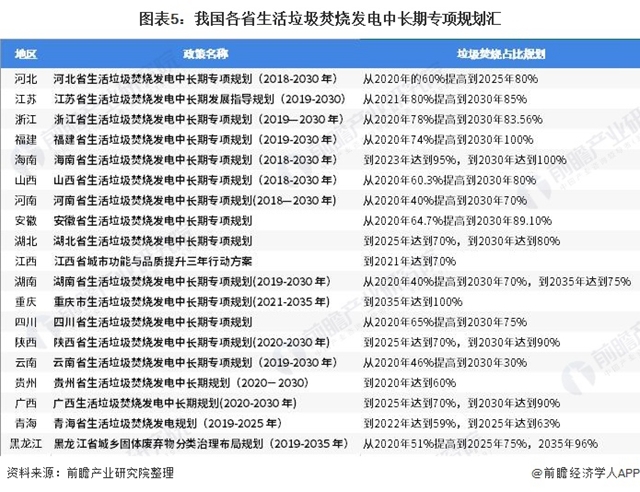 對(duì)標(biāo)日本等人口密度較高的發(fā)達(dá)國(guó)家,垃圾焚燒占比可達(dá) 80%以上。,從目前部分省市已出臺(tái)的規(guī)劃來看,各地政府仍將繼續(xù)提高垃圾焚燒占比,行業(yè)在 2030 年碳達(dá)峰前仍有較大的發(fā)展空間。