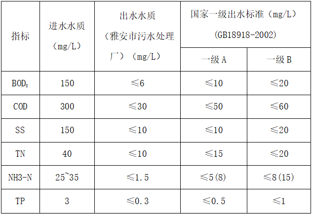 市本級(jí)項(xiàng)目“雅安市污水處理廠新建項(xiàng)目”出水標(biāo)準(zhǔn)采用四川省發(fā)布的《四川省岷江、沱江流域水污染排放標(biāo)準(zhǔn)》(DB51/2311-2016),排放指標(biāo)超過了國(guó)家對(duì)城鎮(zhèn)污水處理廠污染物排放標(biāo)準(zhǔn)(GB1891-2002)的一級(jí)標(biāo)準(zhǔn)A標(biāo)準(zhǔn),并滿足城鎮(zhèn)回用水質(zhì)要求。鄉(xiāng)鎮(zhèn)污水處理站執(zhí)行一級(jí)A標(biāo)準(zhǔn)。污水處理廠/站運(yùn)營(yíng)維護(hù)的工作內(nèi)容及質(zhì)量標(biāo)準(zhǔn)符合污水處理設(shè)施適用法律和國(guó)家行業(yè)規(guī)范、標(biāo)準(zhǔn)的每一項(xiàng)規(guī)定。