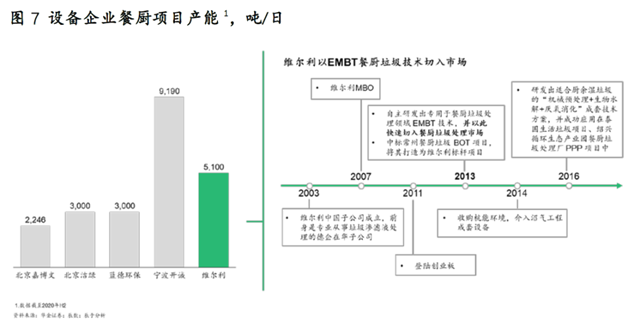 展望“十四五”,我們認為有兩股力量不容忽視,餐廚垃圾處理行業(yè)真正激烈的市場競爭也許才剛剛開始,一方是以寧波開誠、維爾利為代表的企業(yè),他們進入市場較早,主要提供技術或設備,同時具有一定的產(chǎn)能規(guī)模和先發(fā)品牌優(yōu)勢(見圖7)。