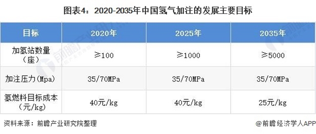 加氫站的大規(guī)模建設(shè)是使用氫能和推廣燃料電池汽車商業(yè)化不可或缺環(huán)節(jié),也是現(xiàn)階段制約我國氫能和燃料電池行業(yè)發(fā)展的重要瓶頸之一。近年來,我國加氫站建設(shè)步伐加快,預(yù)計(jì)到2025年和2035年,我國加氫站數(shù)量分別達(dá)到1000座和5000座。