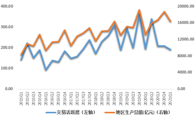 圖 6 浙江省地區(qū)生產(chǎn)總值與交易活躍度相關(guān)性分析