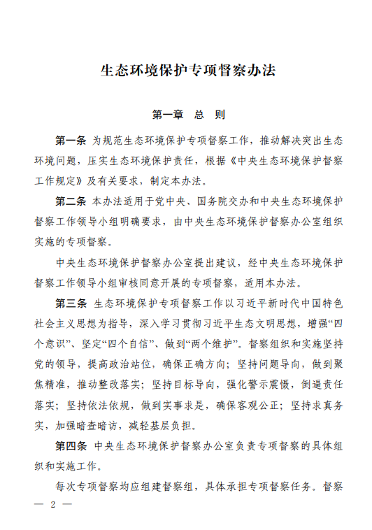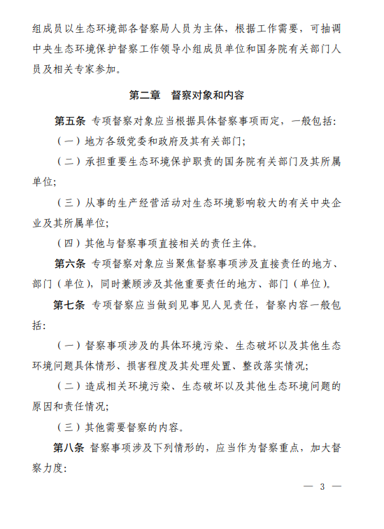《生態(tài)環(huán)境保護(hù)專項(xiàng)督察辦法》的通知